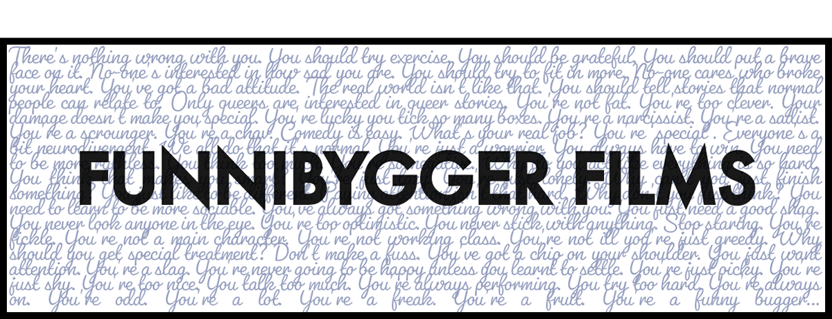 Founded with collaboration at its core, Funnibygger focuses on producing strong queer, disabled, and working class stories with an ever-blossoming cast and crew of deeply talented fellow creatives.